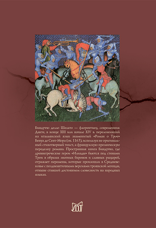 Биндуччо делло Шельто — флорентиец, современник Данте, в конце XIII или начале XIV в. переложивший на итальянский язык знаменитый «Роман о Трое» Бенуа де Сент-Мора (ок. 1165) и использовавший не оригинальный стихотворный текст, а французскую прозаическую переделку романа. Пространная книга Биндуччо, где древнегреческие герои «Илиады» бьются под стенами Трои в образах знатных баронов и славных рыцарей, отражает перемены, которые произошли в Средневековье с позднеантичными версиями троянской легенды, отныне ставшей достоянием словесности на народных языках.