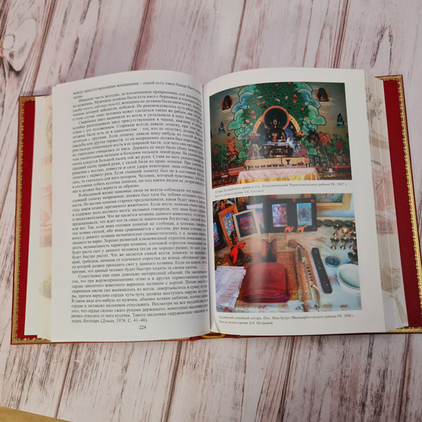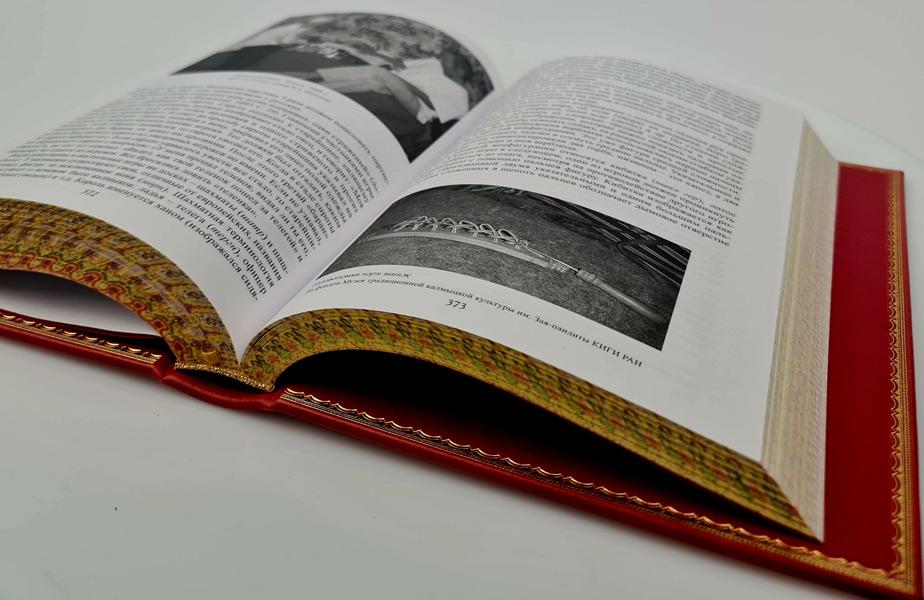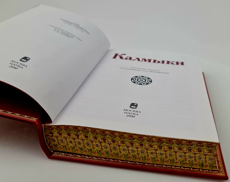 Том подготовлен сотрудниками Института этнологии и антропологии РАН совместно с группой ученых Калмыцкого института гуманитарных исследований РАН. В нем рассматриваются история и традиционная культура калмыков. Книга является первой попыткой академического описания калмыцкого народа как этнической общности. С позиций современной науки исследуются проблема происхождения калмыков, их этническая история, антропологический облик, формирование калмыцкого языка, развитие материальной и духовной культуры, Калмыки, будучи выходцами из Центральной Азии, уже четыре века живут в окружении и погранично с народами юга России и Северного Кавказа и испытывают определенное их влияние. В монографии освещаются вопросы расселения калмыков, особенности их традиционной хозяйственной деятельности, ремесла и промыслы. Хронологические рамки работы охватывают преимущественно XIX–XX вв. В данной работе представлены самые современные научные данные об истории и культуре калмыков. Для этнологов, историков и широкого круга читателей. Переплет ручной работы выполнен по технологиям XIX века из высококачественной переплетной кожи КРС натурального дубления. По всему периметру книги выполнено блинтовое тиснение, конгревное объемное 3D тиснение, а также тиснение «золотой» фольгой. Трехсторонний обрез украшен красочными иллюстрациями на тему книги, выполненными устойчивыми к выцветанию красителями. Дублюра книги (заворот на обратной стороне обложки) украшена тиснением золотой фольгой. Внутри книги шёлковые ляссе и каптал. Стильно оформленное эксклюзивное подарочное издание, выпущенное ограниченным тиражом — будет великолепным, солидным и качественным подарком ручной работы для Ваших близких, друзей, коллег и сослуживцев. Оттенок кожи может отличаться от фотографий на сайте.