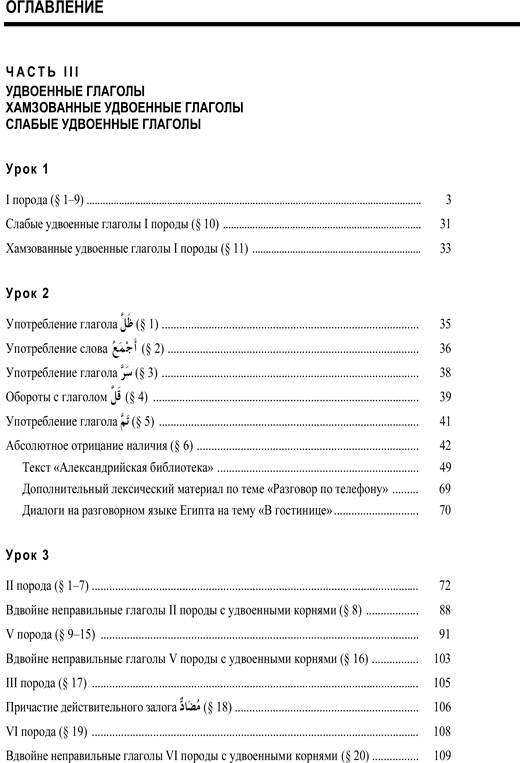 Часть III «Удвоенные глаголы. Хамзованные удвоенные глаголы. Слабые удвоенные глаголы» предназначена для 2-го года обучения.