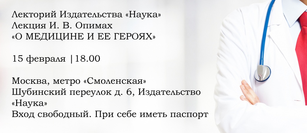 Приглашаем на открытую лекцию И.В. Опимах "О медицине и ее героях"