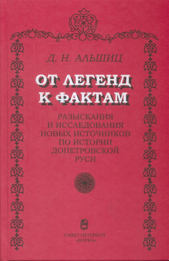 Книга доктора исторических наук, заслуженного деятеля науки РФ Д. Н. Альшица «От легенд к фактам» посвящена проблемам истории допетровской Руси, а также вопросам источниковедения. Героями книги выступают как исторические личности -- Александр Невский, Дмитрий Донской, Иван Грозный, Екатерина II, так и многие выдающиеся русские ученые: историки С. М. Соловьев, В. О. Ключевский, С. Ф. Платонов, филологи А. А. Шахматов, Д. С. Лихачев и др. Книга написаны живым литературным языком и представляет интерес для широкого круга читателей.